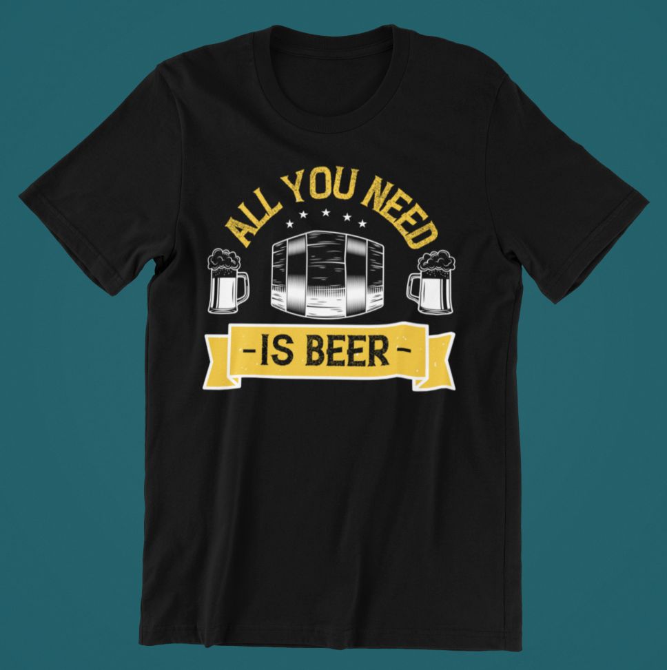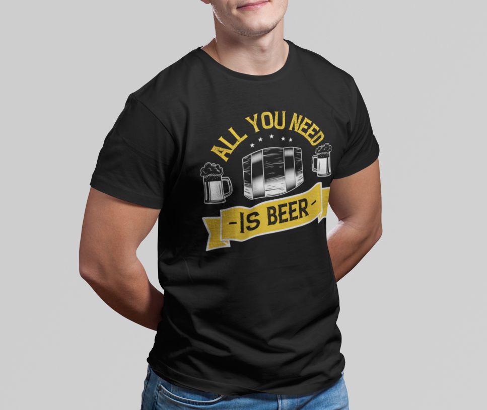 Tricou – All you need is beer, cu mesaj hazliu personalizat, cadoul ideal pentru cei ce iti sunt dragi.