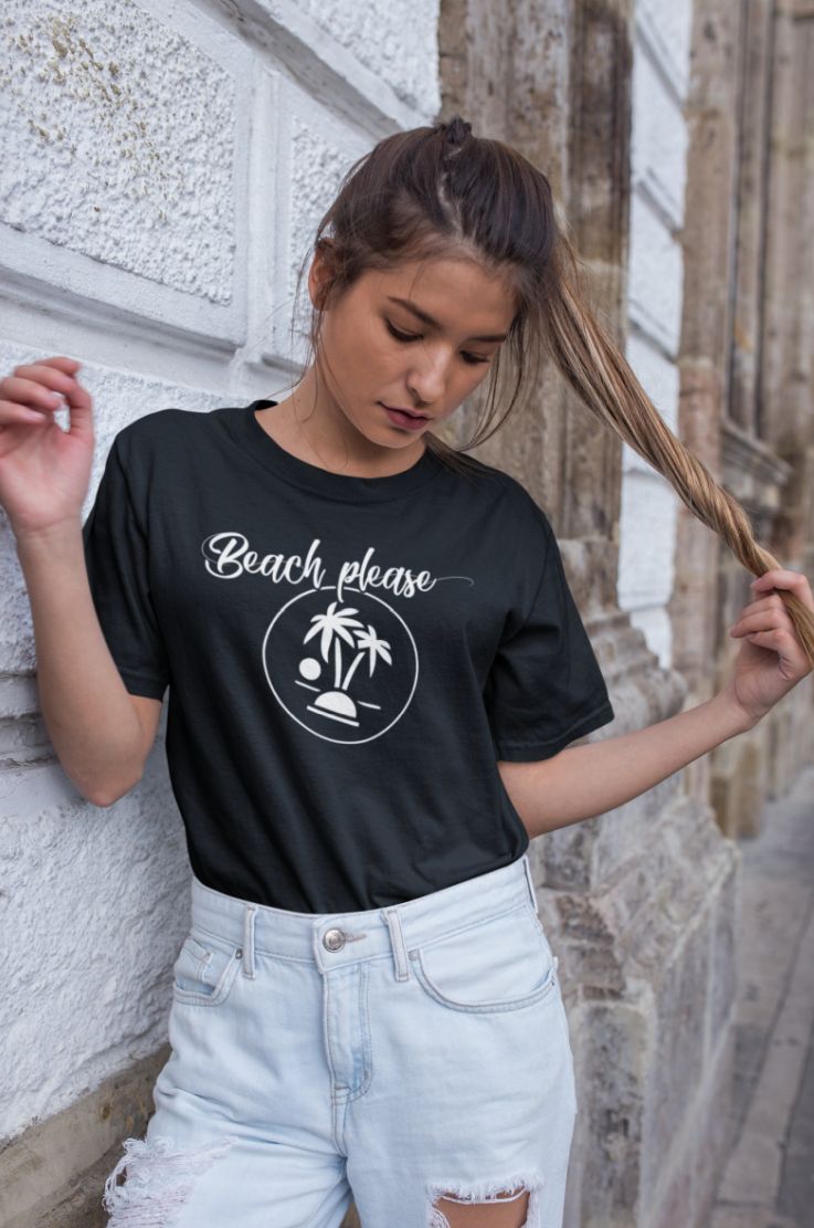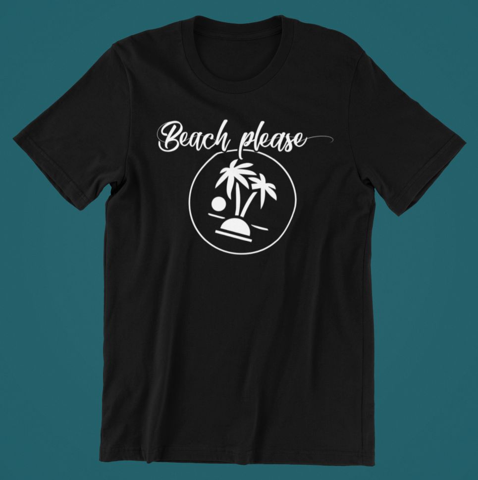 Tricou – Beach Please, cu mesaj hazliu personalizat, cadoul ideal pentru cei ce iti sunt dragi.