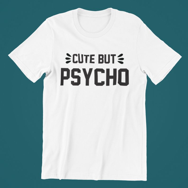 Tricou – Cute but psycho, cu mesaj hazliu personalizat, cadoul ideal pentru cei ce iti sunt dragi.