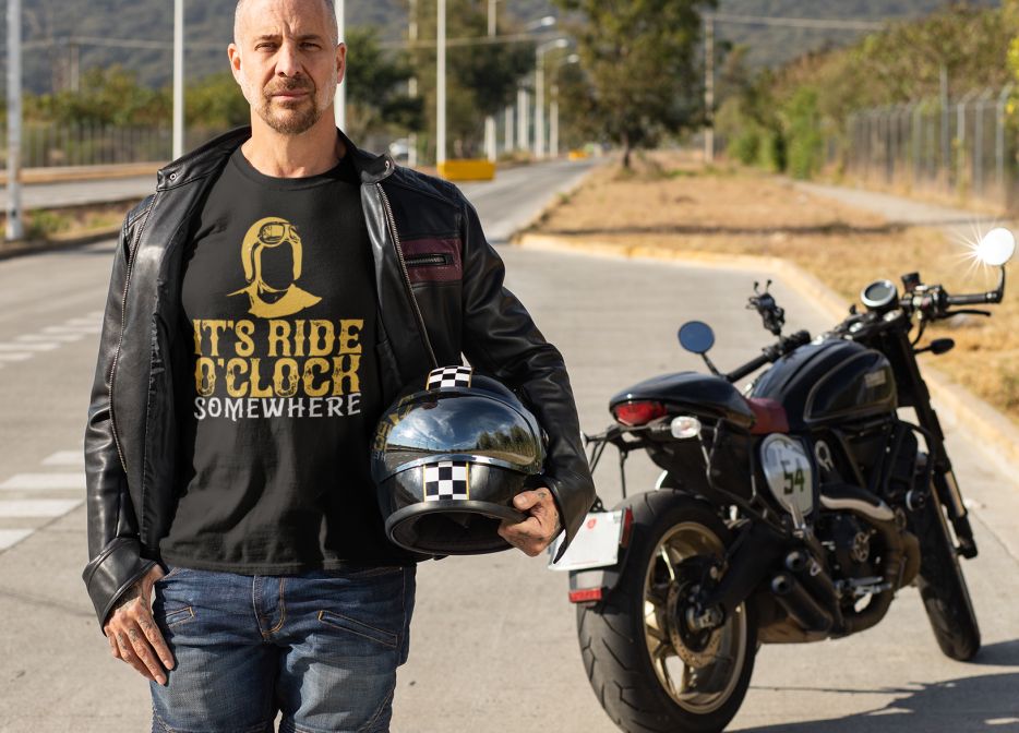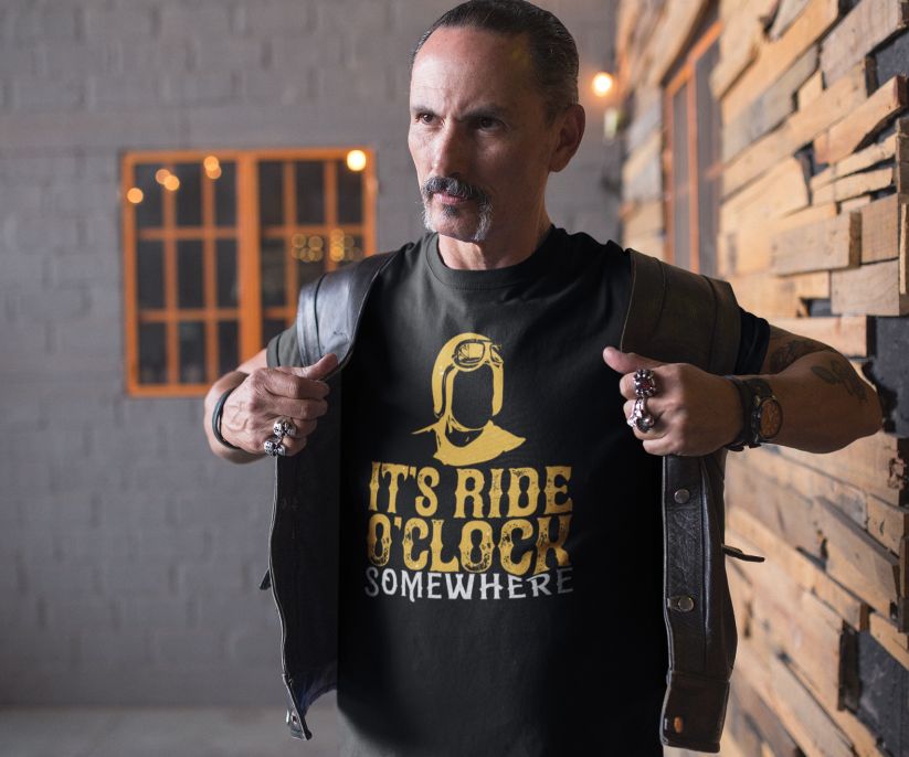 Tricou – It’s ride o’clock somewhere, cu mesaj hazliu personalizat, cadoul ideal pentru cei ce iti sunt dragi.