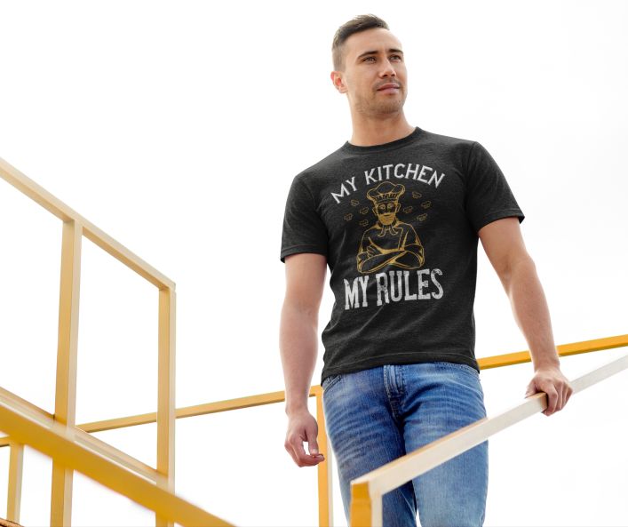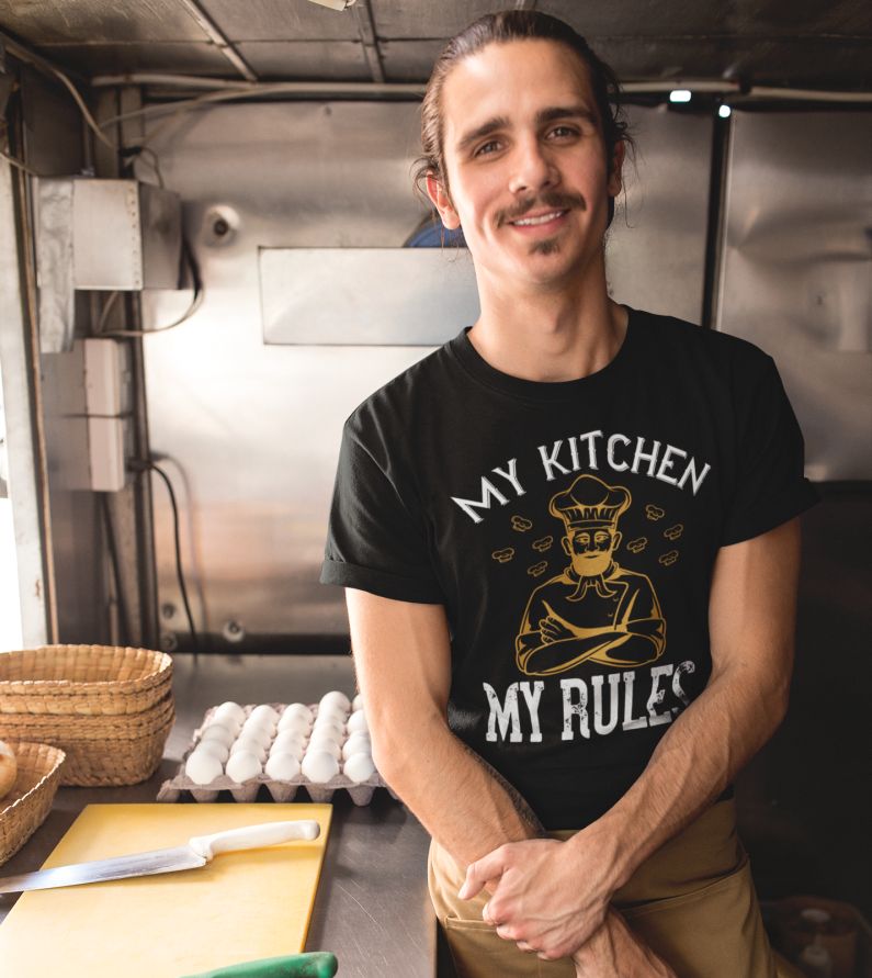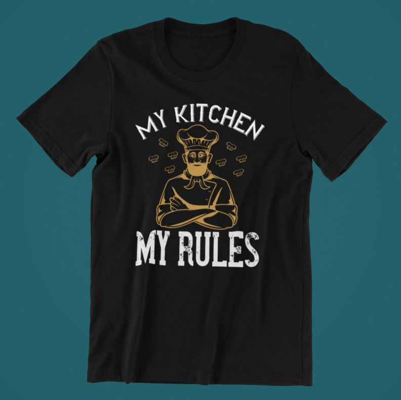 Tricou – My kitchen my rules, cu mesaj hazliu personalizat, cadoul ideal pentru cei ce iti sunt dragi.