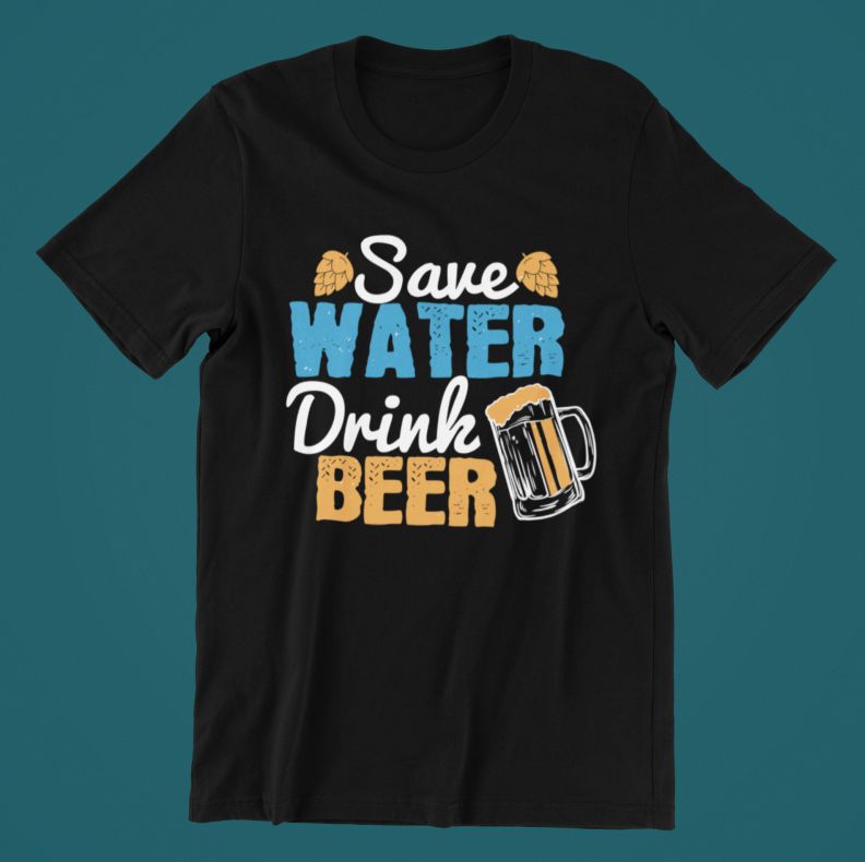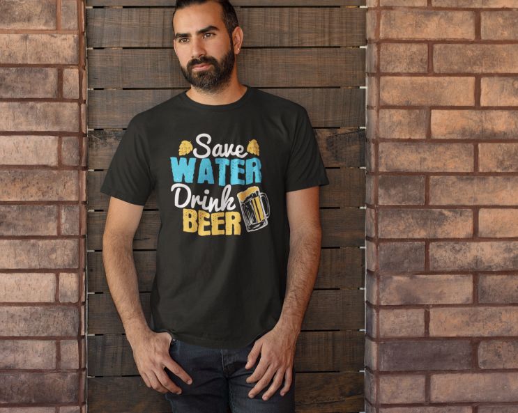 Tricou – Save water drink beer, cu mesaj hazliu personalizat, cadoul ideal pentru cei ce iti sunt dragi.