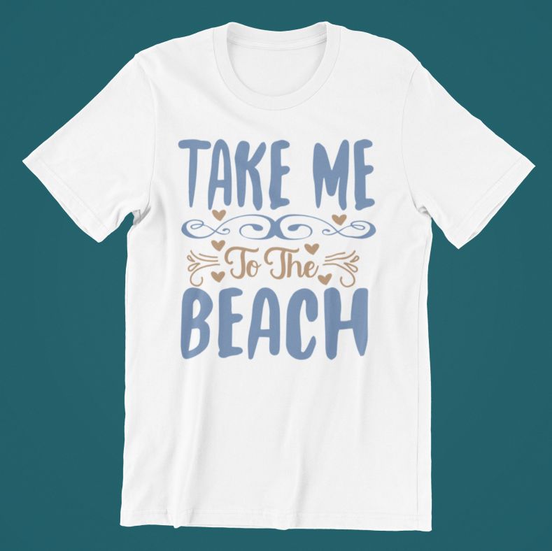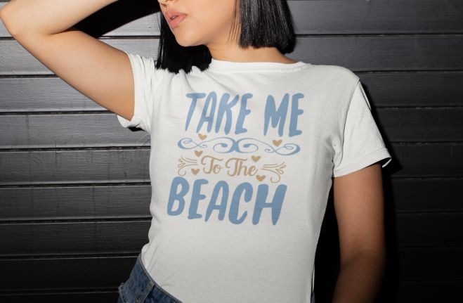 Tricou – Take me to the beach, cu mesaj hazliu personalizat, cadoul ideal pentru cei ce iti sunt dragi.